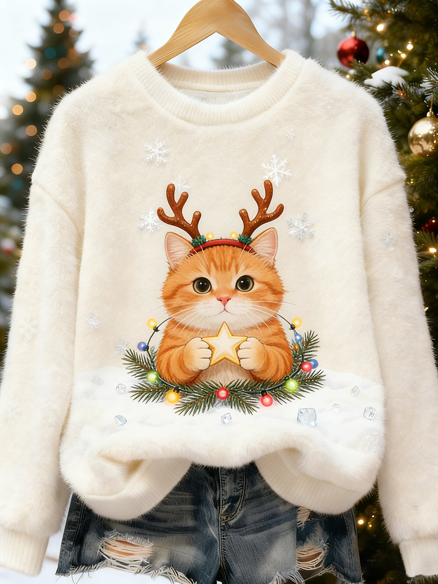 Arte animal retro impressão confortável top de flanela feminino
