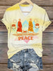 Camisola de manga curta com decote em v feminino com impressão do elemento "Caminhada pela Paz".