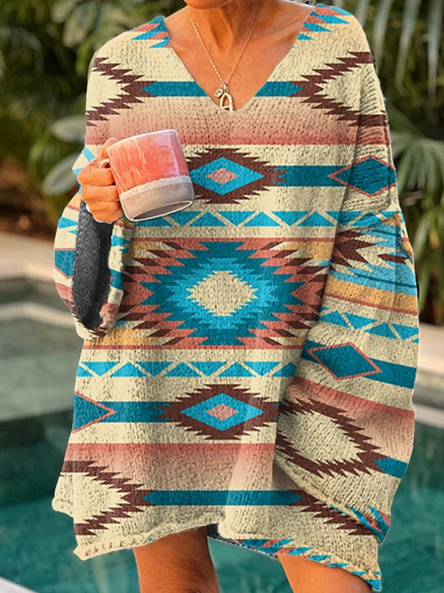 Camisola de manga longa asteca étnica ocidental das mulheres