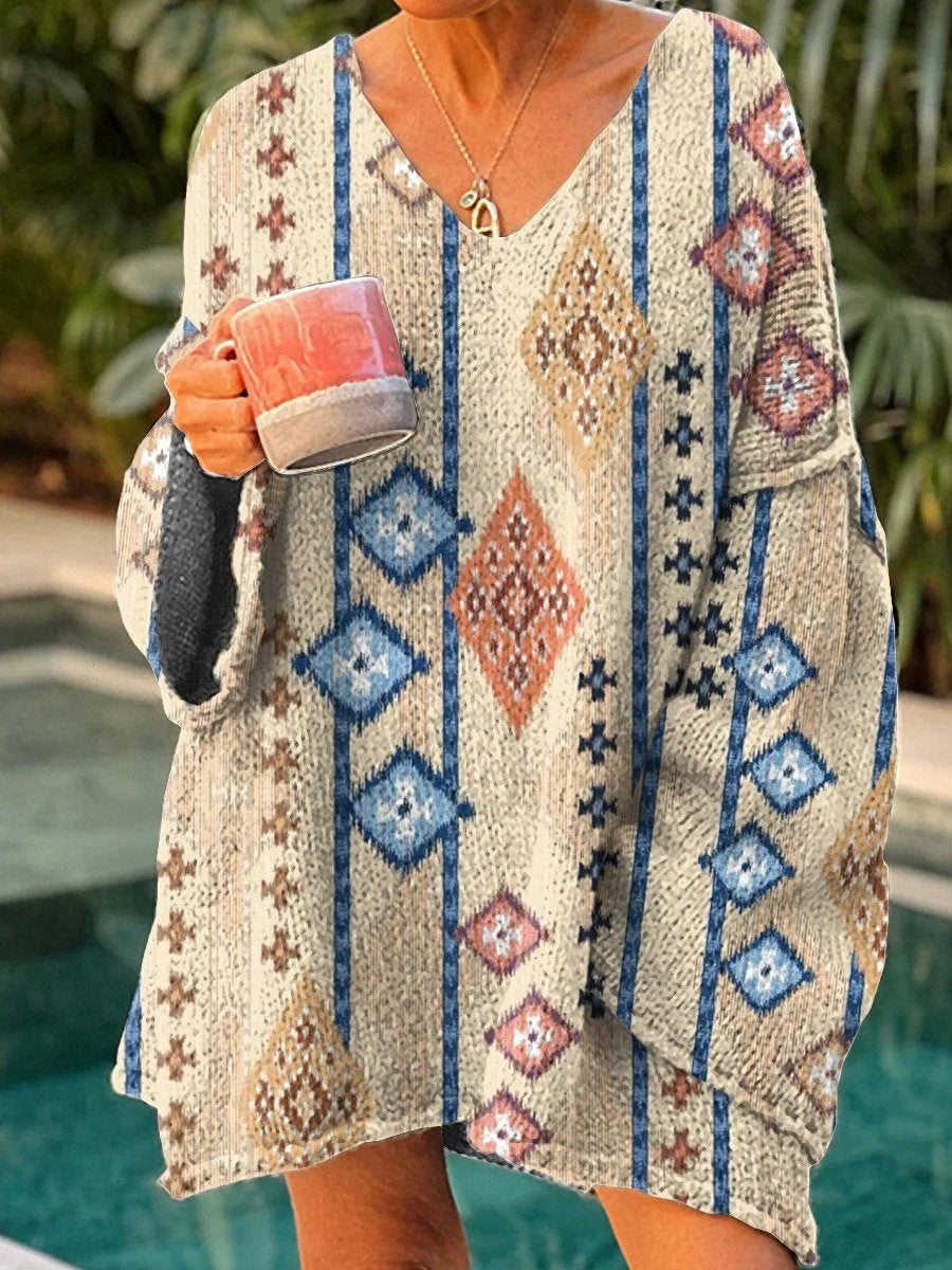 Camisola de manga longa asteca étnica ocidental das mulheres