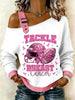 Câncer de mama feminino impresso um ombro Suspender Casual Sweater