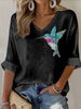 Jóias femininas Pássaro impressão preto Moda V-Neck Top