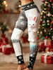 Retro Natal coelho floco de neve Patchwork esportes estiramento Leggings feminino