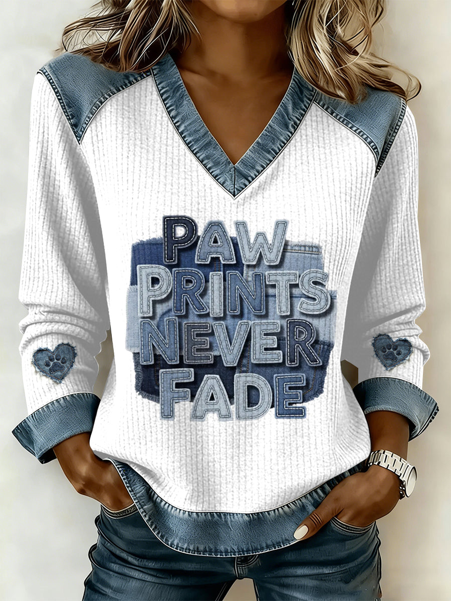 Vintage cão Patchwork impressão Casual v-Neck moletom feminino