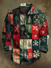 Xadrez vintage impressão Natal Casual manga longa camisa