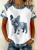 Adorável buldogue francês padrão Denim Patchwork Top das mulheres