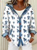 Adorável cão padrão Denim Patchwork Cardigan com capuz feminino