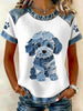 Adorável cão padrão Denim Patchwork Top das mulheres