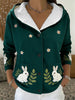 Adorável coelho verde escuro do mulheres & Margarida bordado Sherpa-forrado jaqueta
