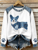 Adorável Corgi padrão Denim Patchwork Waffle moletom das mulheres