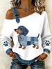 Adorável Dachshund padrão Denim Patchwork Top das mulheres