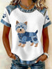 Adorável Yorkshire Terrier padrão Denim Patchwork Top das mulheres