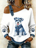 Animal bonito impressão Denim Patchwork Top confortável das mulheres