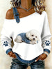 Animal bonito impressão Denim Patchwork Top confortável das mulheres