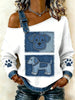 Animal bonito impressão Denim Patchwork Top confortável das mulheres