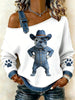 Animal bonito impressão Denim Patchwork Top confortável das mulheres