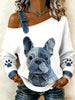 Animal bonito impressão Denim Patchwork Top confortável das mulheres