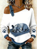 Animal bonito impressão Denim Patchwork Top confortável das mulheres
