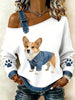 Animal bonito impressão Denim Patchwork Top confortável das mulheres