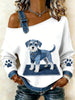 Animal bonito impressão Denim Patchwork Top confortável das mulheres