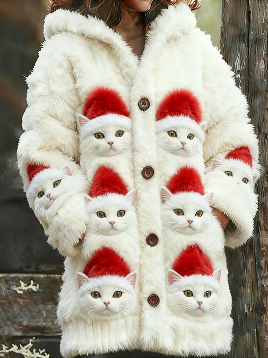 Arte Animal retro feminino imprime cardigan de flanela confortável