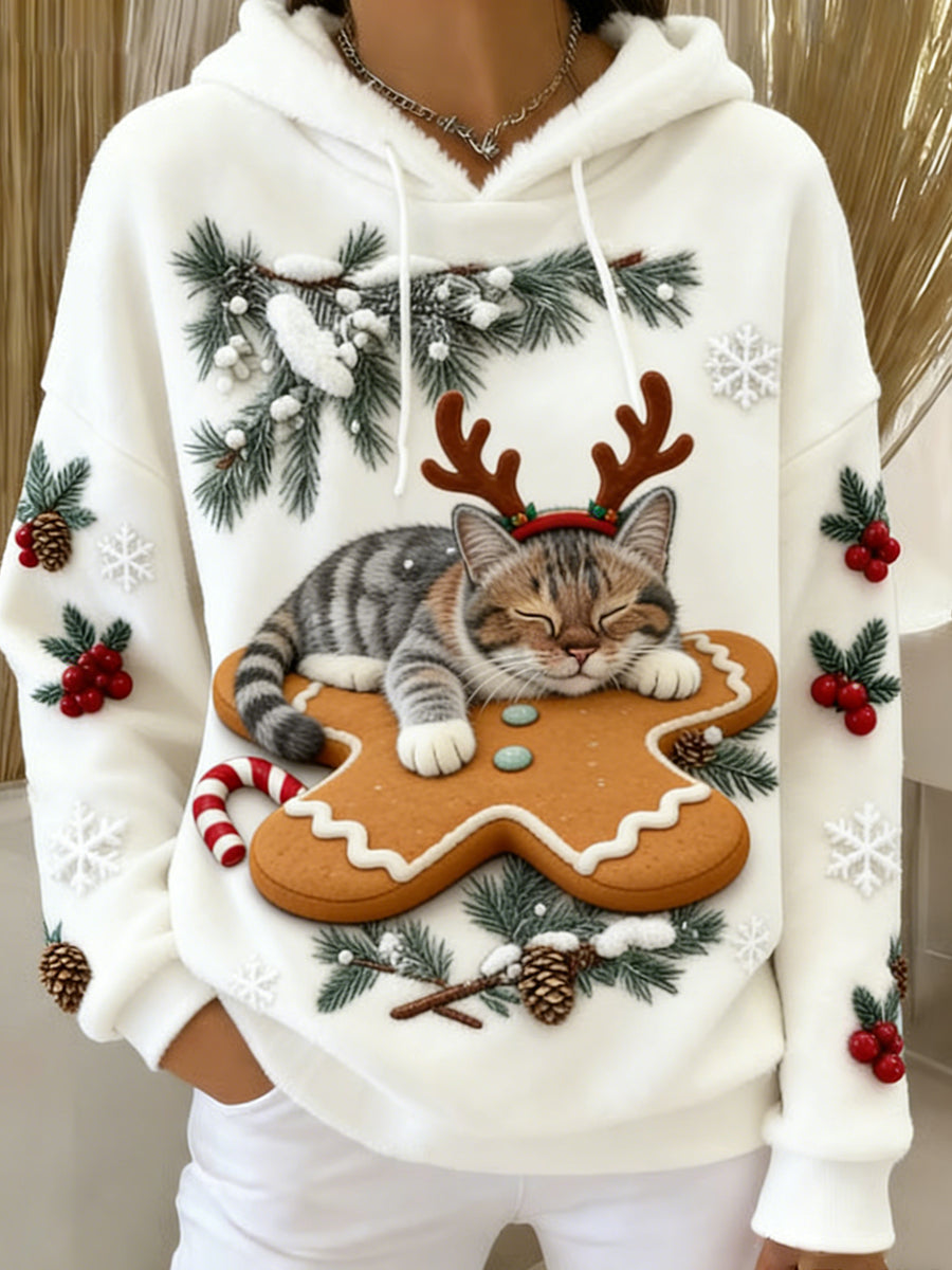 Arte Animal retro feminino imprime moletom com capuz de flanela confortável