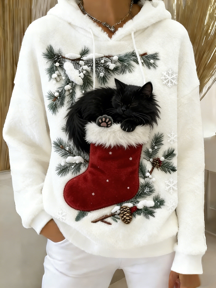 Arte Animal retro feminino imprime moletom com capuz de flanela confortável
