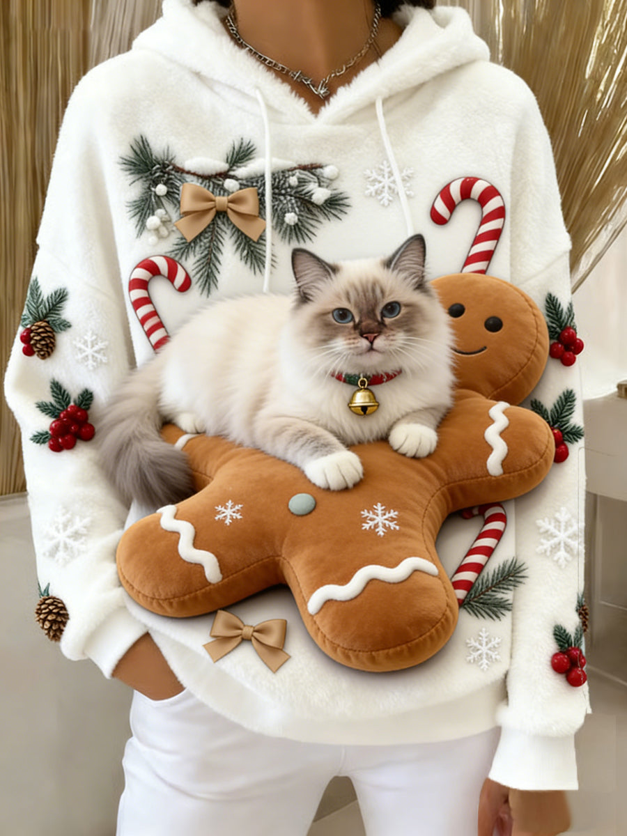 Arte Animal retro feminino imprime moletom com capuz de flanela confortável