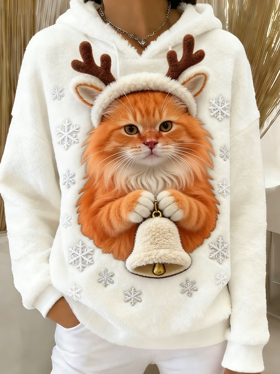 Arte Animal retro feminino imprime moletom com capuz de flanela confortável