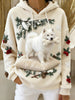 Arte Animal retro feminino imprime moletom com capuz de flanela confortável