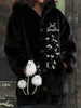 Arte animal retro impressão confortável jaqueta de flanela feminino