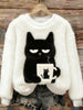 Arte animal retro impressão confortável top de flanela feminino