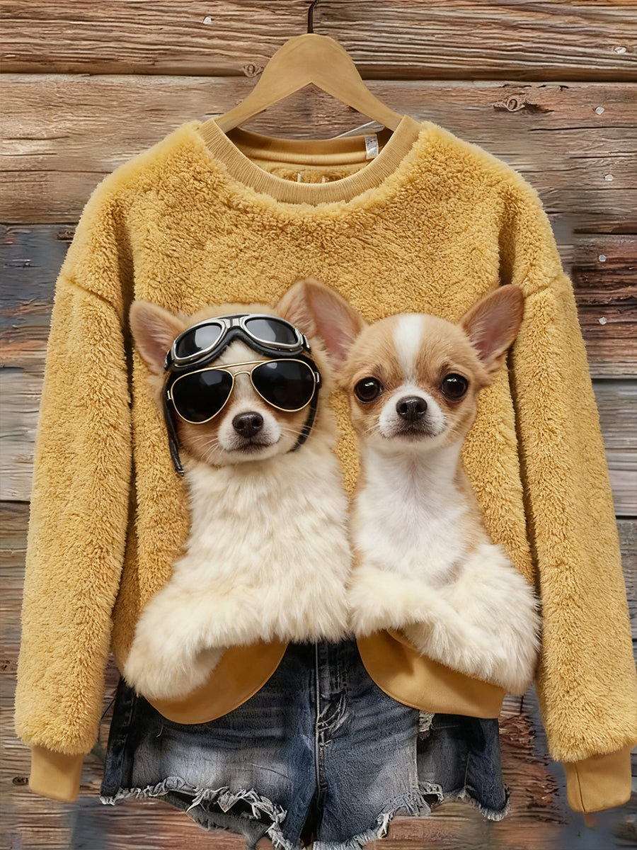 Arte de Natal retro animal feminino impressão Casual flanela Top