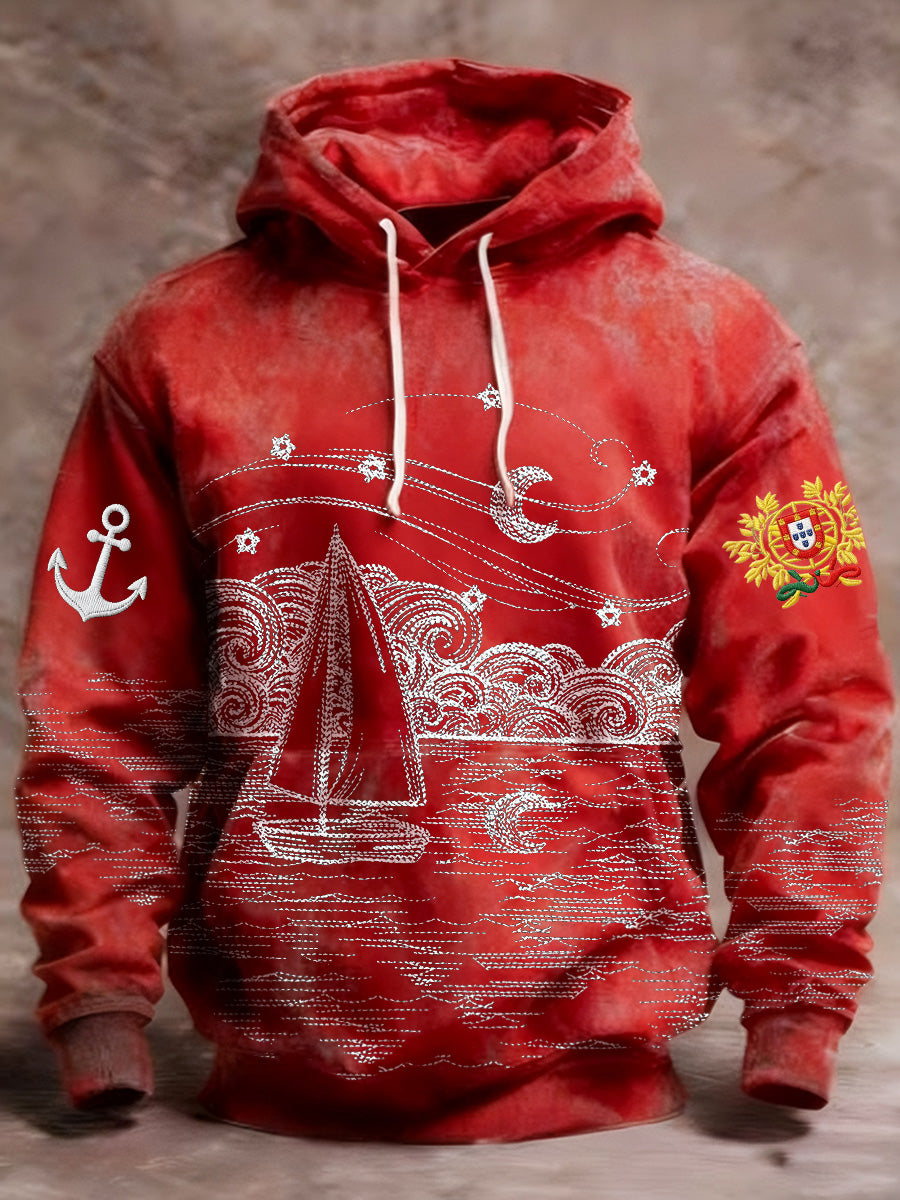 Bandeira portuguesa masculina de impressão Casual moletom com capuz