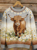 Camisola acolhedora da vaca Highland Floral Art feminino