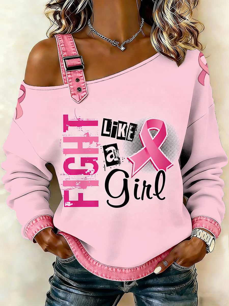 Câncer de mama feminino impresso um ombro Suspender Casual Sweater