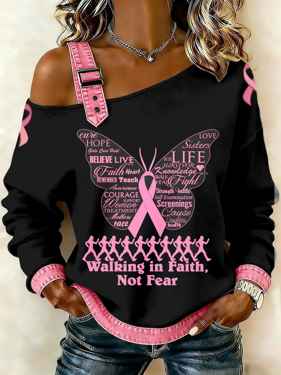 Câncer de mama feminino impresso um ombro Suspender Casual Sweater