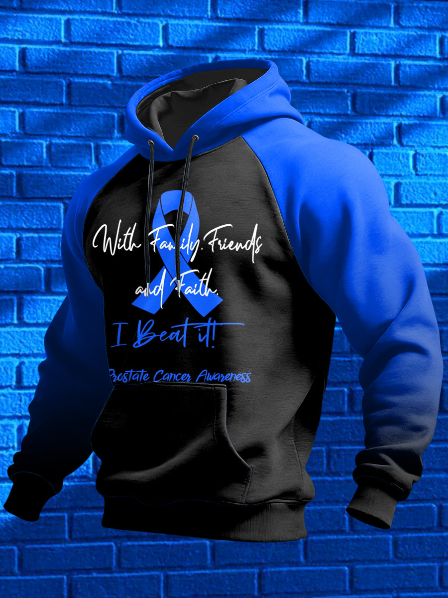 Câncer de próstata masculino impresso ombro moletom com capuz manga comprida