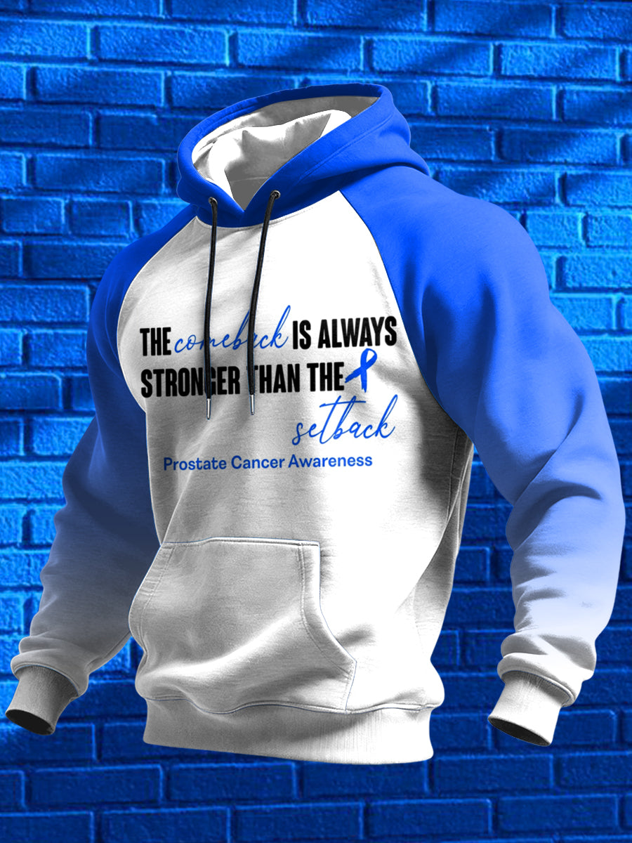 Câncer de próstata masculino impresso ombro moletom com capuz manga comprida