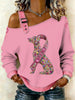 Cão de câncer de mama feminino impresso um ombro Suspender Casual Sweater