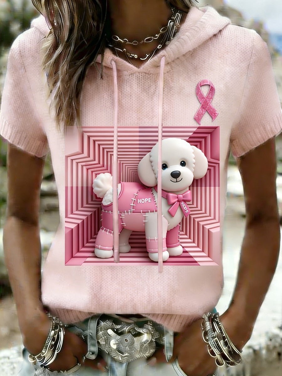 Consciência do câncer de mama Retro bonito do filhote feminino Casual manga curta malha camiseta