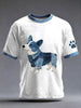 Denim Patchwork Art Corgi Dog Padrão camiseta lavada do homens