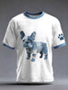 Denim Patchwork arte buldogue francês padrão masculino lavado t-shirt