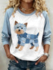 Denim Patchwork arte Yorkshire Terrier cão padrão moletom do mulheres