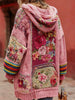 Estilo Vintage consciência de câncer de mama feminino temático padrão Floral Button-Up confortável com capuz Cardigan Sweater