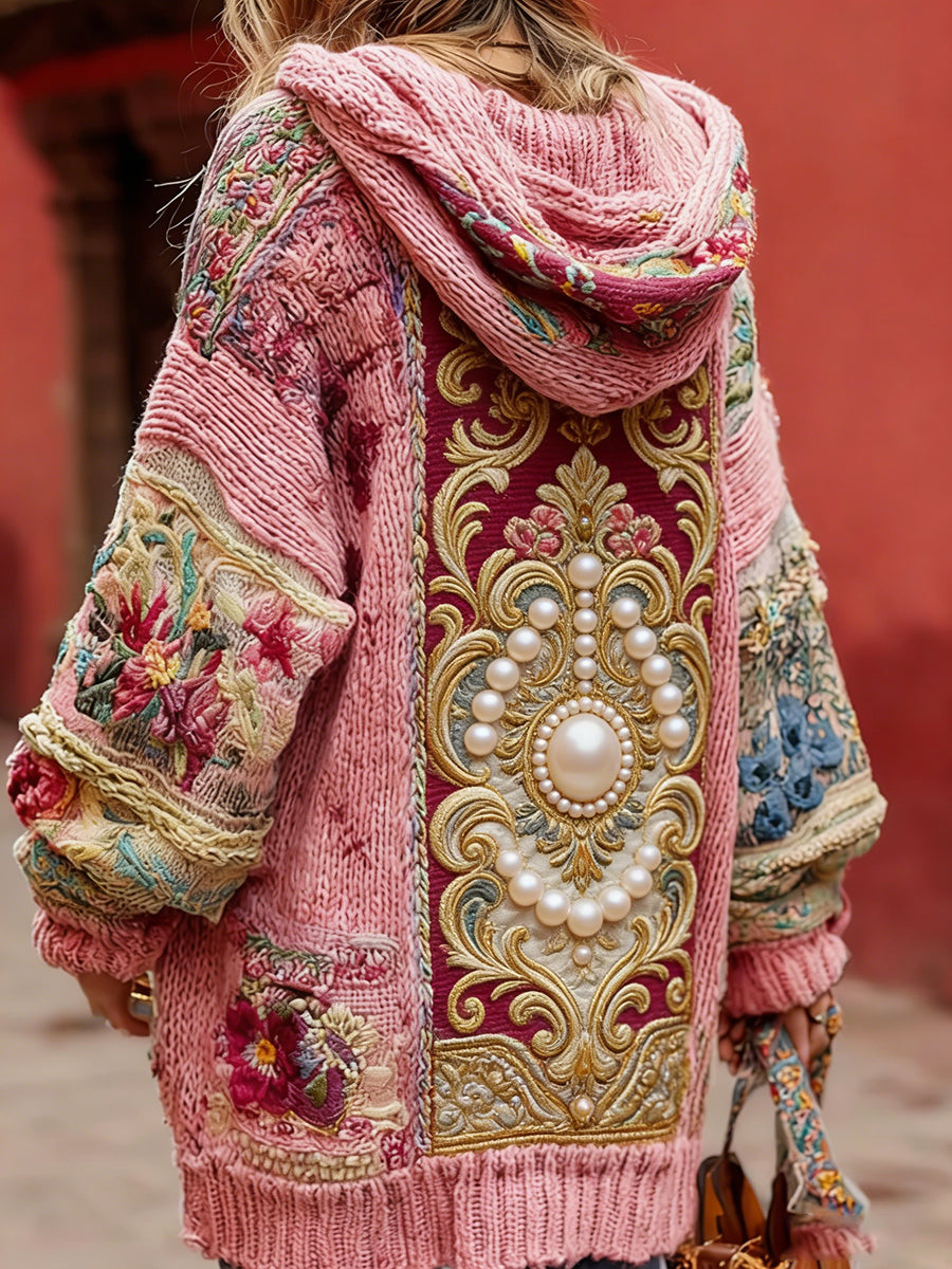 Estilo Vintage consciência de câncer de mama feminino temático padrão Floral Button-Up confortável com capuz Cardigan Sweater
