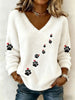 Gato bonito coração e patas feminino Flanela v-Neck Top