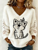 Gato bonito e patas das mulheres Flanela V-Neck Top