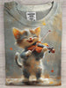 Gato Violino Imprimir Casual Manga Curta T-shirt