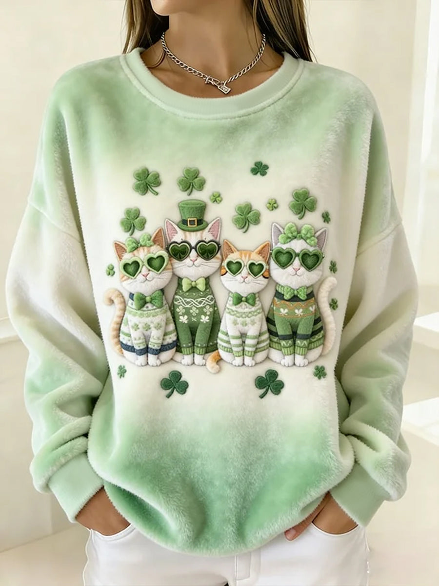 Gatos bonitos do trevo das mulheres imprimem a camisola da flanela